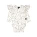 De verfijnde bloemenprint in neutrale tinten maakt deze baby ruffle romper een favoriet voor elk seizoen. Hoogwaardige kwaliteit, hip design en met liefde gemaakt.